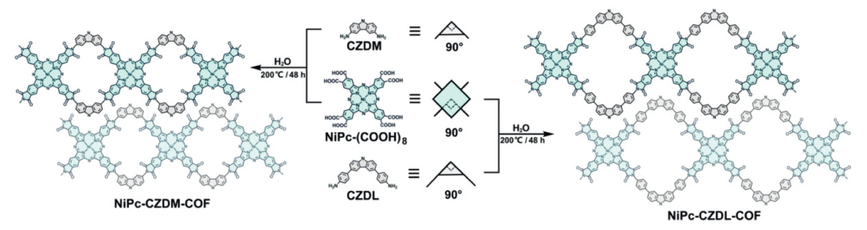 Scheme 2.  Schematic synthesis of NiPc-CZDM-COF and NiPc-CZDL-COF.