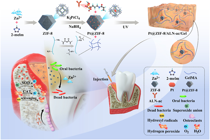 A Pt@ZIF-8/ALN-ac/GelMA composite hydrogel with antibacterial, antioxidant, and osteogenesis for periodontitis