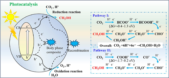 Figure 2  Mechanism and pathways of photocatalytic CO2-to-methanol conversion with SACs.