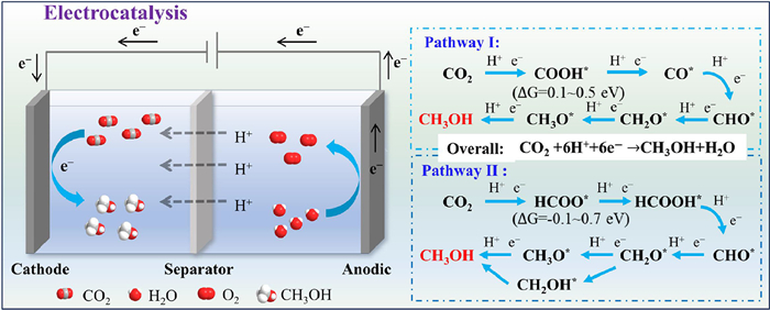 Figure 3  Mechanism and pathways of electrocatalytic CO2-to-methanol conversion with SACs.