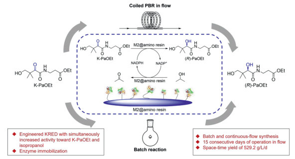 Batch and continuous-flow asymmetric synthesis of D-pantothenic acid precursor enabled by immobilized ketoreductase mutant
