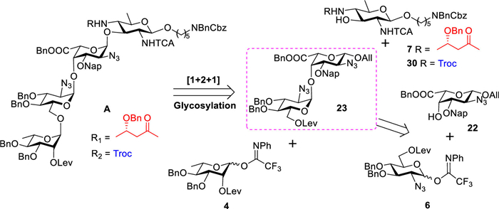 Figure 3  Design and retrosynthetic analysis of a tetrasaccharide A.