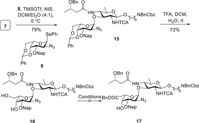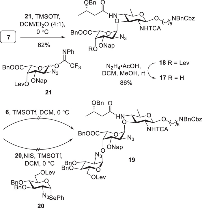 Scheme 2.  Attempts to synthesize disaccharide acceptor 17.