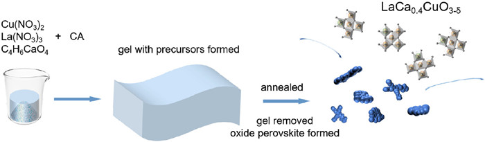 • Figure 1  Schematic of the synthesis route of LaCa0.4CuO3-δ by sol-gel method.