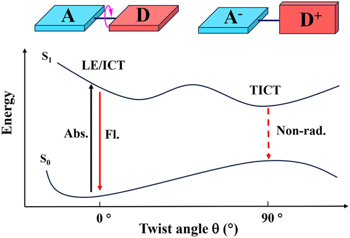 Figure 5  Simplified scheme of the TICT in a D-A fluorophore.