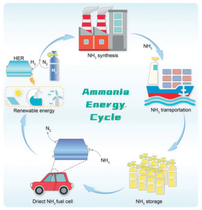 As economic growth intensifies, the issues associated with fossil fuels, including non-renewability and environmental pollution, are becoming increasingly evident. Consequently, developing alternative energy sources to replace traditional fossil energy has emerged as a crucial strategy for addressing the energy crisis and mitigating environmental challenges [1, 2]. Compared with the combustion of traditional fossil fuels, fuel cells, an efficient energy conversion technology not constrained by the Carnot cycle, have garnered significant interest over the years. Notably, proton exchange membrane fuel cell (PEMFC), which utilizes hydrogen as a fuel source, has achieved particular maturity [3, 4]. However, the application of PEMFC is significantly constrained by the high costs associated with the storage and transportation of hydrogen under high pressure [5]. In response to these limitations, researchers have explored alternative solutions. A promising approach involves the development of carbon- and nitrogen-based energy sources such as ammonia, methanol, isopropanol, and hydrazine, which aim to serve as viable substitutes for hydrogen energy [6-11]. In terms of the theoretical oxidation potential, all of these small molecules (ammonia, methanol, isopropanol and hydrazine) are closely aligned with the hydrogen oxidation potential and possess sufficiently low oxidation potentials for use as anodes in fuel cells, which utilize an oxygen reduction reaction (ORR) on the other side of the cathode. However, there are specific challenges with some of these alternatives. Methanol, as a representative carbon-based fuel, leads to CO2 emissions. Alternatively, carbon-free carbon-based materials, such as isopropyl alcohol, can undergo dehydrogenation to produce acetone in fuel cells to release energy. However, these materials have a lower volumetric energy density and high cost. While hydrazine, another alternative, as a representative of nitrogen-based carbon-emission-free fuel, is prohibitively expensive, diminishing its practicality as a fuel. To overcome these hurdles, ammonia has been proposed as an alternative small molecule fuel. It offers the dual benefits of being carbon-emission-free and cost-effective, making it a more viable and sustainable option for fuel cell technologies [12]. The use of ammonia as a fuel offers several distinct advantages that increase its appeal for energy applications (Fig. 1). First, ammonia is easily stored, requiring only approximately 10 atm of pressure for liquefaction at room temperature [7]; Second, it boasts a high volumetric energy density of 12.92–14.4 MJ/L [13]; Third, there is a well-established industry chain for its preparation, transportation, and storage, particularly in terms of sea transport and land pipe-line transport [14]. Furthermore, ammonia does not emit a carbon footprint during use [15], and the synthesis of ammonia is progressively moving toward non-polluting methods, such as electrochemical synthesis and the offshore production of green ammonia. These innovations provide favorable conditions for the use of ammonia as a fuel over other energy carriers (Fig. 2 and Table 1) [16-18]. As a result, such developments pave the way for a carbon-free cycle with ammonia as its core energy carrier, highlighting its significant potential as a sustainable energy solution.