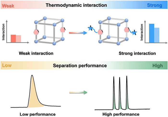 Scheme 1.  Schematic diagram of improving separation ability of MOF-stationary phases by increasing the thermodynamic differentiation.