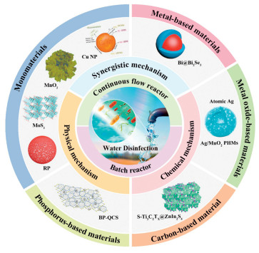 Figure 1 Recent advances in photothermal water disinfection. Reprinted with permission [17]. Copyright 2019, American Chemical Society. Reprinted with permission [18]. Copyright 2023, American Chemical Society. Reprinted with permission [19]. Copyright 2021, The Royal Society of Chemistry. Reprinted with permission [20]. Copyright 2020, American Chemical Society. Reprinted with permission [21]. Copyright 2018, The Royal Society of Chemistry. Reprinted with permission [22]. Copyright 2020, The Royal Society of Chemistry. Reprinted with permission [23]. Copyright 2019, Elsevier. Reprinted with permission [24]. Copyright 2021, American Chemical Society. Reprinted with permission [25]. Copyright 2022, The Royal Society of Chemistry.