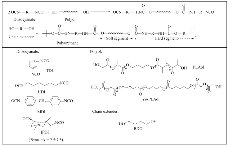 Hexamethylene diisocyanate (HDI), 4, 4 -diphenyl methane diisocyanate (MDI), 1, 4-butanediol (BDO) and stannous octoate (SnOct2) are analytically pure, and were obtained from Aladdin (Shanghai, China). Toluene diisocyanate (TDI), tetrahydrofuran (THF) and N, N-dimethyl formamide (DMF) were purchased from Sinopharm Chemical Reagent Co., Ltd. e-Caprolactone (CL) and L-lactide (LA) were provided from Shenzhen Esun Industrial Co., Ltd.
