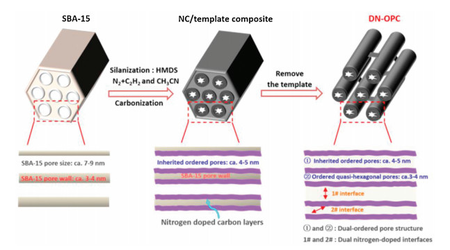Synthesis of an ordered porous carbon with the dual nitrogen-doped interfaces and its ORR catalysis performance