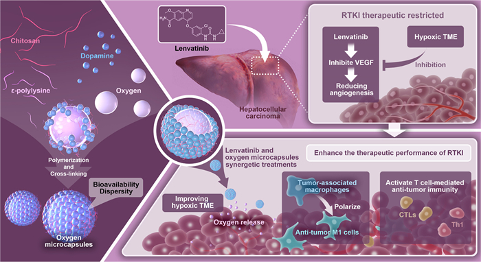 Synergetic treatment of oxygen microcapsules and lenvatinib for enhanced therapy of HCC by alleviating hypoxia condition and activating anti-tumor immunity