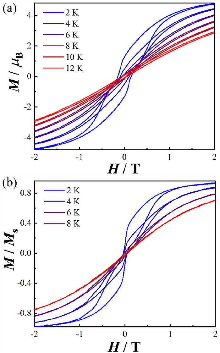 Figure 4  (a) Magnetic hysteresis loops for 1Dy and (b) its diamagnetically diluted sample 1Dy@1Y under an average scan rate of 200 Oe/s.