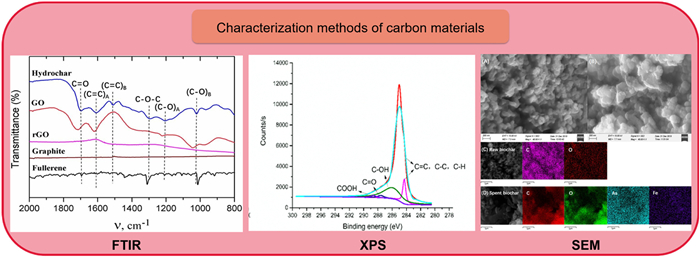 Figure 9  Characterization methods of carbon materials including X-ray photoelectron spectroscopy (XPS), fourier transform infrared spectroscopy (FTIR), and scanning electron microscopy equipped with energy dispersive X-ray spectroscopy (SEM-EDX). Reprinted with permission [62]. Copyright 2021, Elsevier.