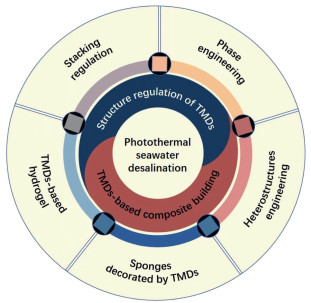 Materials used for photothermal desalination need to have good light absorption efficiency, photothermal conversion performance, and water transport performance. The structure of the material determines its properties, so it is necessary to regulate the structure to improve the TMDs properties, thereby improving the performance of TMDs. Structure regulation mainly includes morphology regulation to form water channel, crystal phase regulation to create TSSs, and heterostructures regulation.