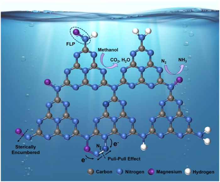Herein, we constructed photocatalytic nitrogen fixation catalysts containing FLPs in one step by directly introducing electron-deficient Mg during the synthesis of CN, which greatly facilitated the performance of NH3 production by N2 reduction in the photocatalytic N2 fixation reaction, and could provide a new idea for the modulation of the sites of similar photocatalysts containing FLPs.
