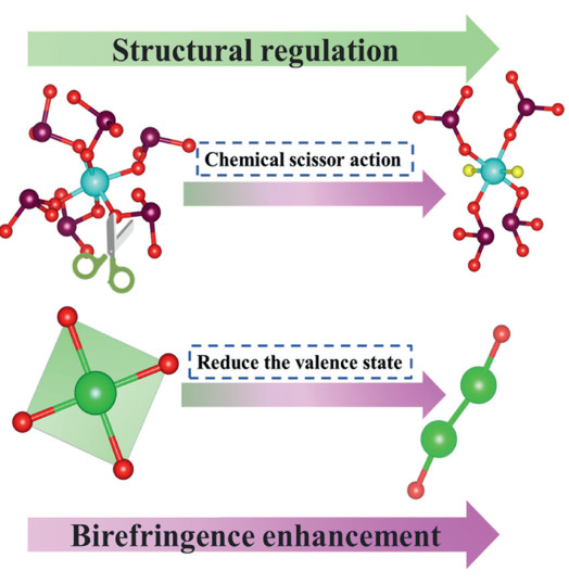 • Birefringent crystals are important optical functional components in commercial, agricultural, industrial, and military fields [1-4]. Some crystals have been commercialized, such as CaCO3 [5], YVO4 [6], MgF2 [7], TiO2 [8], and LiNbO3 [9]. In recent years, the requirements for miniaturization of devices have also increased, with the rapid development of photoelectric technology. The miniaturization of devices requires that crystals must have sufficiently large birefringence [10-12]. Therefore, it is very important to explore the optical materials with large birefringence for the development of science and technology.