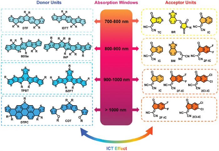 Figure 1 Relationship between ICT effects and the selection of donor and acceptor units in NFAs. Reproduced with permission [59]. Copyright 2022, John Wiley and Sons.