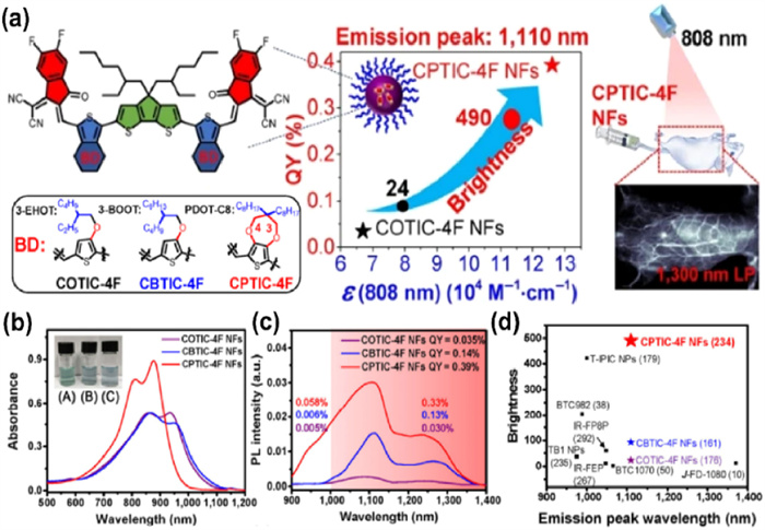 949 ~980 67.94 N.D. N.D. PTT, PDT, immunotherapy [54] Abbreviations: FLQY: fluorescence quantum yield. N.D.: no data. 2. NFAs for phototheranostics