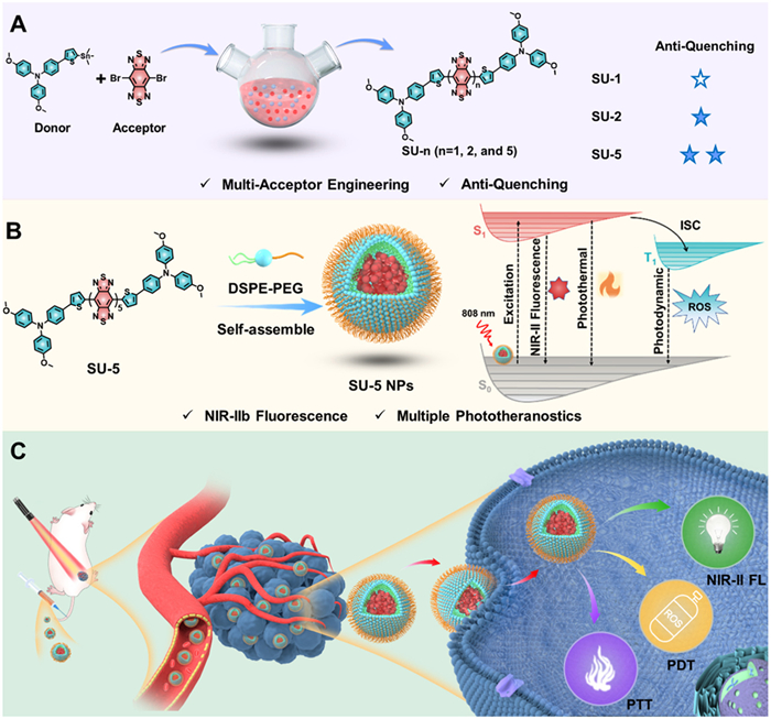Quintuple-acceptor engineering of anti-quenching conjugated oligomers for highly efficient NIR-Ⅱb imaging and phototheranostics