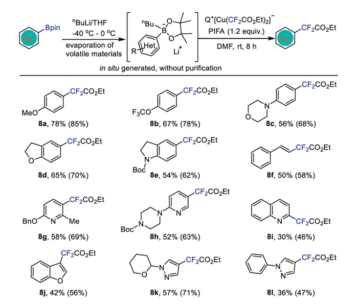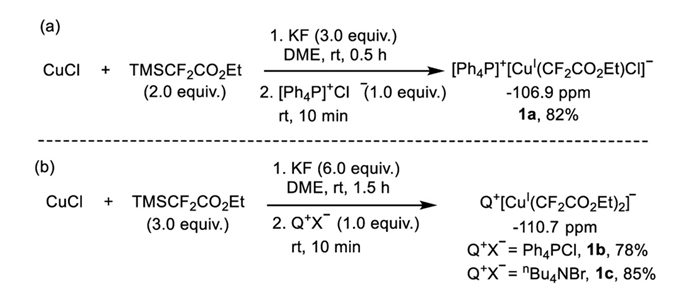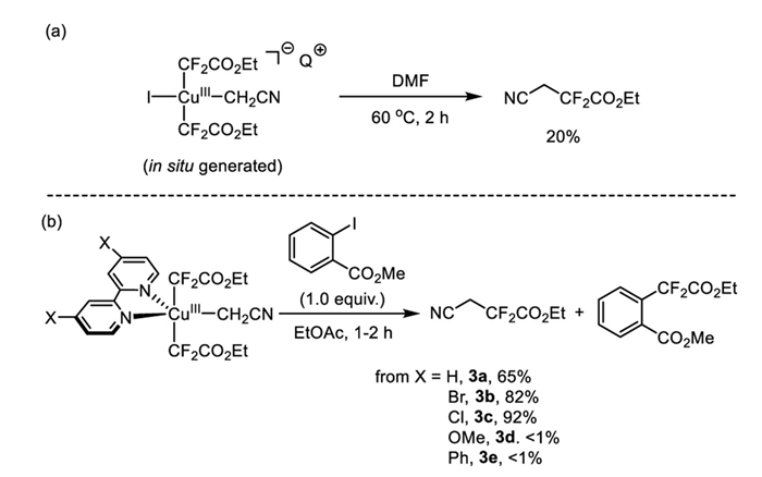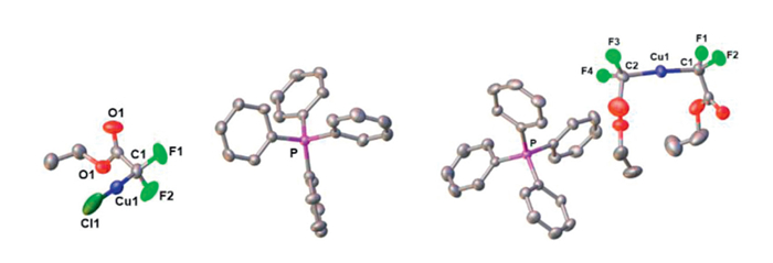 Key intermediates in Cu to Cu catalytic cycle for ethoxycarbonyl difluoro- methylation