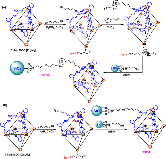 Figure 2  Preparation of [Zn6M4]-based CSP-A (a) and CSP-B (b).