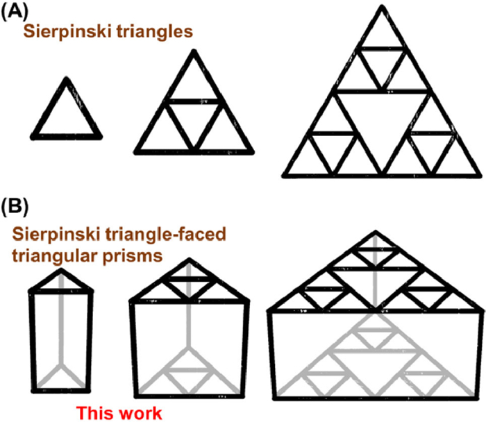 • Figure 1  Schematic illustration of (A) the Sierpiński triangles and (B) the Sierpiński triangle-faced triangular prisms.
