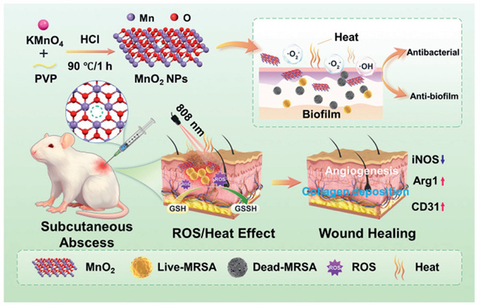 Citation: Jing Zhao, Tian Huang, Dongyang Zhang, Jianliang Shen, Jintao Wang. NIR-enhanced oxidase-like activity of manganese dioxide nanoparticles for combating subcutaneous methicillin-resistant Staphylococcus aureus infections[J]. Chinese Chemical Letters, ;2026, 37(4): 111199. doi: 10.1016/j.cclet.2025.111199 shu