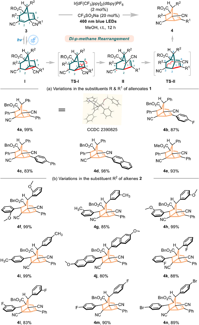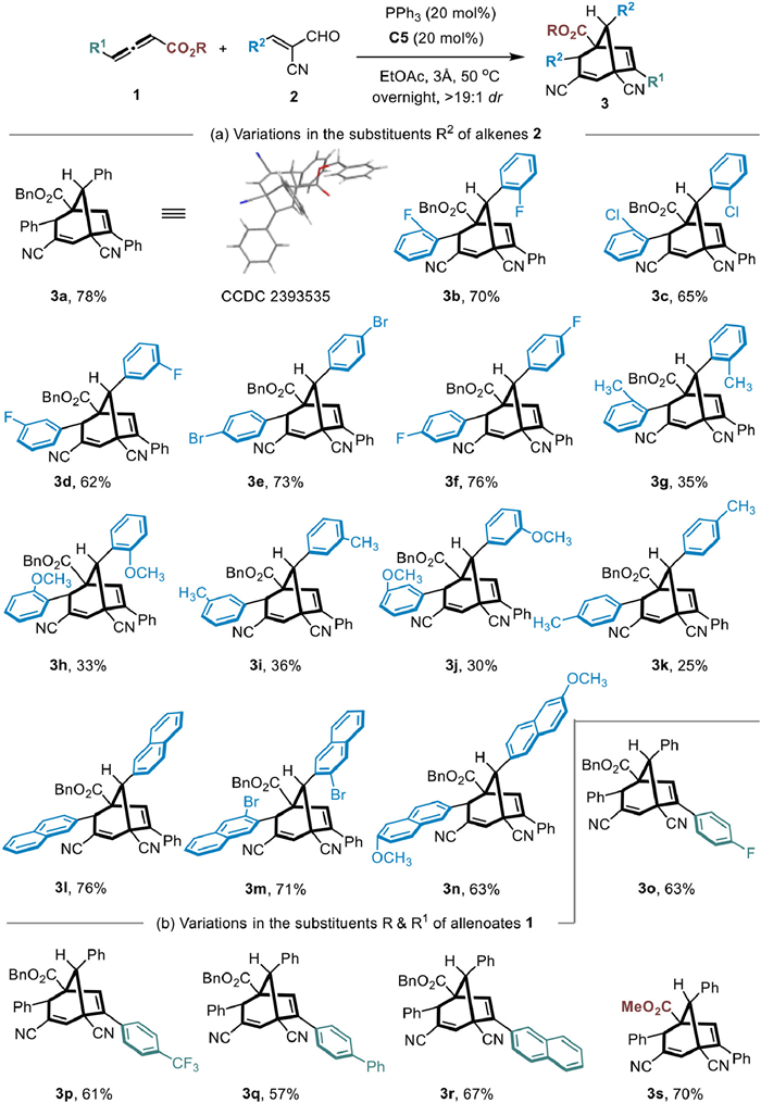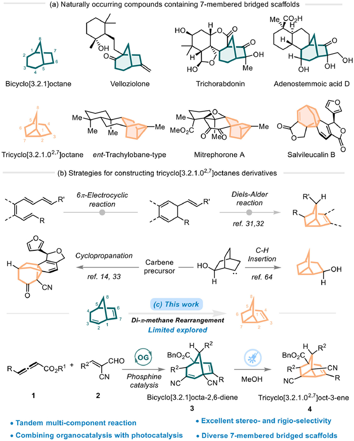 Citation: Ze-Hong Zheng, Mu-Qiu Chen, Jin Zhou, Jie Wang, Yan-Rong Wei, Cheng Peng, Gu Zhan, Qian-Qian Yang, Bo Han. Diverse synthesis of bridged bicyclo[3.2.1]octa-2,6-diene and tricyclo[3.2.1.02,7]oct-3-ene frameworks via stepwise cascade reactions[J]. Chinese Chemical Letters, ;2025, 36(12): 111202. doi: 10.1016/j.cclet.2025.111202 shu