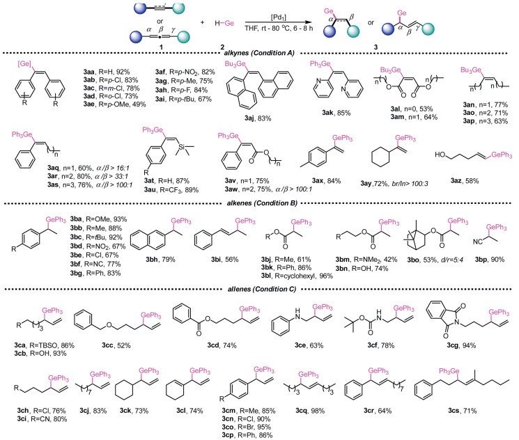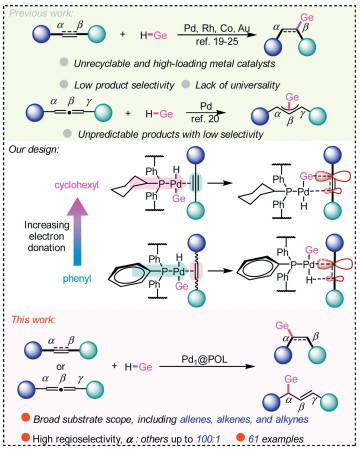 Highly regioselective hydrogermylation of unsaturated C-C bonds over ligand-control single atom palladium catalysts