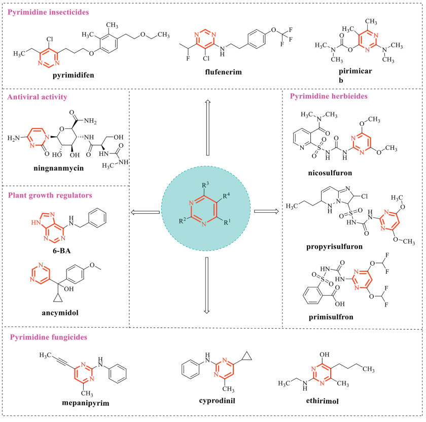 Over the last decade, scientists have developed numerous pyrimidine analogs with different biological functions through intermediate derivatization, structural substitution, and active molecule splicing methods. These novel analogs exhibit high activity, selectivity, and low toxicity in areas such as insecticidal, herbicidal, fungicidal, and antiviral properties.