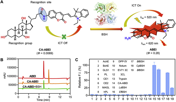 Citation: Wenchao Chen, Xiaoting Niu, Xinyu Liang, Guanghao Zhu, Xue Zhang, Qing Gong, Cen Xie, Guangbo Ge, Ping Wang, Yuqi He. Rationally engineered a universal far-red fluorogenic substrate of bile salt hydrolase for functional imaging and inhibitor screening[J]. Chinese Chemical Letters, ;2026, 37(4): 111320. doi: 10.1016/j.cclet.2025.111320 shu
