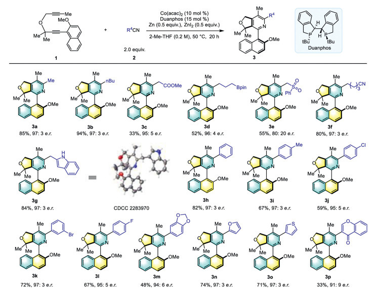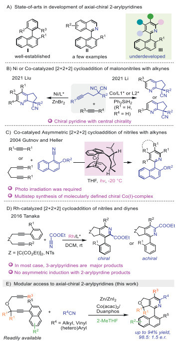 Modular synthesis of polyfunctionalized axial-chiral 2-arylpyridines via cobalt-catalyzed asymmetric [2 + 2 + 2] cycloaddition of diynes and nitriles