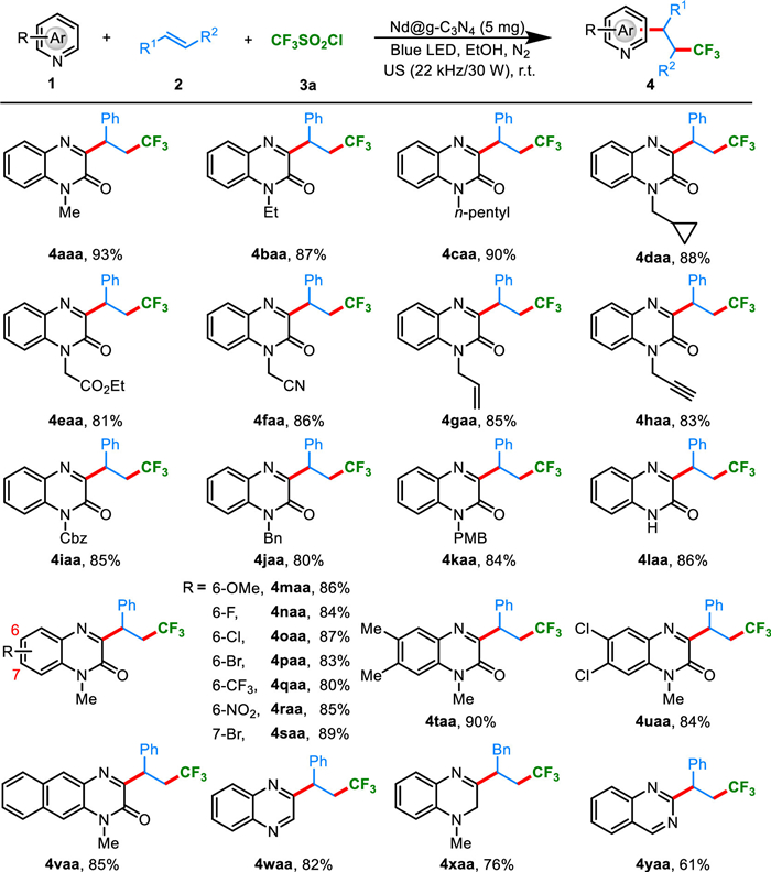 Citation: Qiong-Hui Peng, Ning-Bo Li, Jia-Cheng Hou, Cai-Jun He, Ya-Xin Yang, Chun-Lin Zhuang, Li-Juan Ou, Mei Yuan, Wei-Min He. Nd@g-C3N4 dual-functional photosynthesis and antitumor activities of 3-fluoroalkylated quinoxalin-2(1H)-ones[J]. Chinese Chemical Letters, ;2025, 36(12): 111402. doi: 10.1016/j.cclet.2025.111402 shu