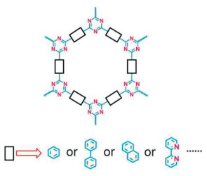 CTFs are a class of organic porous materials formed by covalent bonding with a triazine ring as the structural unit, typically obtained from nitrogen-rich aromatic precursors by polymerization reaction (Fig. 8) [58]. While CTFs are a branch of the COFs family, their unique triazine ring structure endows them with exceptional physicochemical properties and remarkable stability [63,108,109]. In 2008, Kuhn et al. successfully obtained the first CTFs material (CTF-1) under ionothermal conditions [110]. This pioneering work not only established the foundation for the exploration and development of CTFs but also opened the door to their extensive applications across energy, catalysis and adsorption and separation.