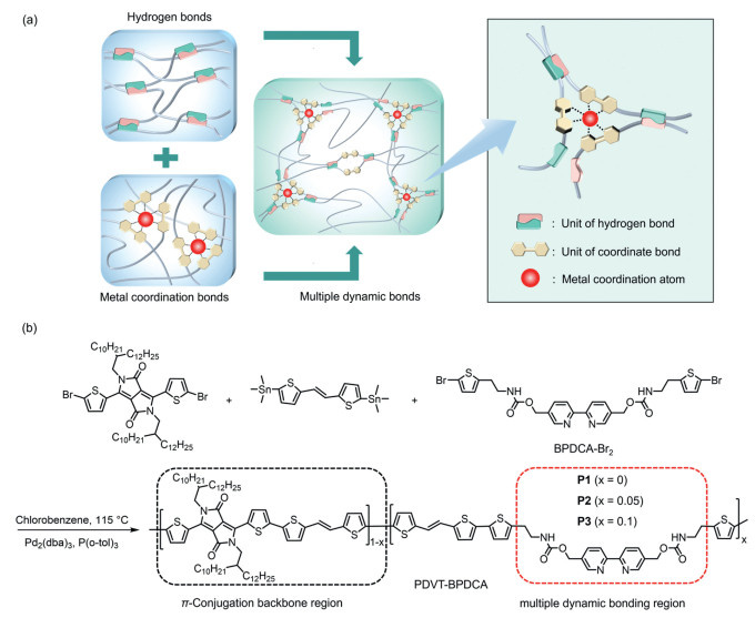 Intrinsically stretchable polymer semiconductors synergistically constructed by hydrogen bonds and metal coordination