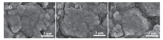 图 5  (a) 未使用的LCO正极的SEM图; 在-40 ℃条件下使用(b) Y3 Blank和(c) T9电解液的电池循环后所对应LCO正极的SEM图