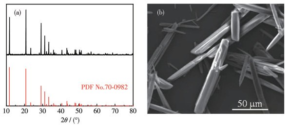,可得到较纯的形貌为片状正六边形的冰晶石产物。此时,萃余液中铝的回收利用率达98.4%。$ n_{\mathrm{F}^{-}}: n_{\mathrm{Al}^{3+}}=6: 1$
