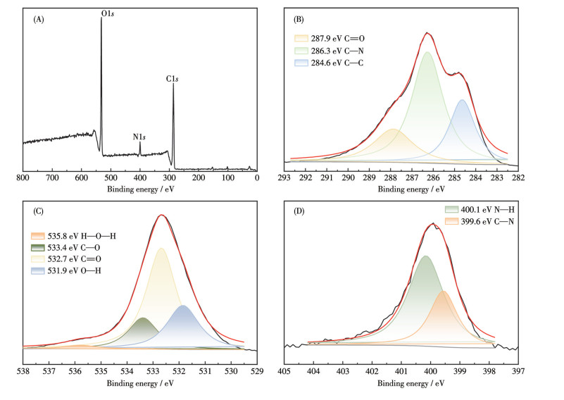 图 2  vCDs的(A) XPS全谱图及(B) C1s、(C) O1s和(D) N1s XPS谱图