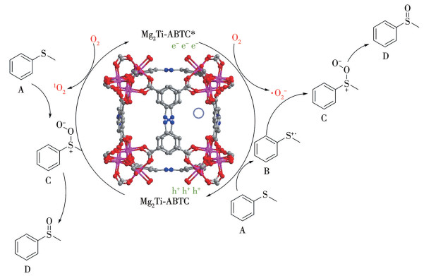 Figure 6  Possible mechanism of photocatalytic oxidation reaction of thioanisole by Mg2Ti-ABTC in an air atmosphere