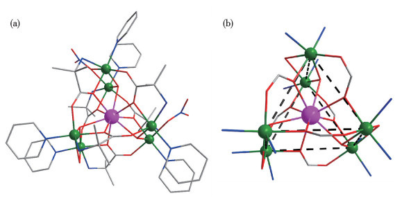 从Gateschi等[17]报道的第一例稀土-过渡金属钆铜配合物开始,经过这几十年的发展,稀土-过渡金属团簇因其独特的化学性质而受到科研人员的广泛研究和关注[18]。稀土金属元素具有特殊的4f/5d价电子结构,其配位数的可变性决定了它们具有独特的性质[19]。其中的镧系稀土金属具有相似的最外层和次外层电子结构,使稀土元素具有化学性质稳定、化学价态可变、配位形式多样等特点[20],另外特有的镧系收缩特点也影响了其与配体之间的配位成键,因此稀土掺杂的多金属团簇通常表现出特殊的光电特性和催化性能[21-22],在多个领域具有潜在的应用价值[23]。
