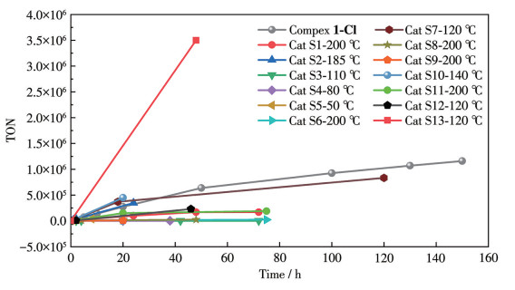 * Reaction conditions: 0.1 μmol complex 1-Cl in 1 mL EtOH, pCO2pH2=1∶1, 1.2 mol·L-1 aqueous solution of KOH (10 mL), 150 ℃, 5 h.