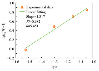 $ \mathsf{lg}\left(\frac{{I}_{0}\text{'}}{I\text{'}}-1\right)=A+\frac{\theta }{3}\mathsf{lg}x $ (4) 式中,I0′=I0/x0,I′=I/x(I、I0分别为掺杂浓度x、x0时的发射积分强度,x0选取低掺杂浓度值,本文中x0=0.01)。图 8给出了CAGO: xPr3+橙色荧光粉的lg(I0′/I′-1)与lg x的关系。对曲线进行线性拟合,得到斜率(θ/3)为1.817,即θ=5.451,接近6。电多极相互作用机制通常分为电偶极-电偶极作用(θ=6)、电偶极-电四极作用(θ=8)和电四极-电四极作用(θ=10)[30]。因此,引起CAGO: xPr3+橙色荧光粉浓度猝灭的原因是电偶极-电偶极相互作用[31]。