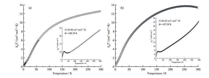 Figure 5  Temperature dependence of χMT for HU23 (a) and HU24 (b)