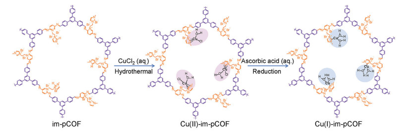 Figure 13 Schematic illustration for the preparation process of Cu(Ⅱ)-im-pCOF and Cu(Ⅰ)-im-pCOF[116]