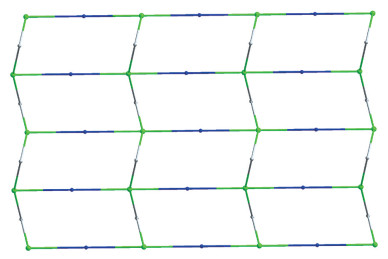 The asymmetric unit of 2 possesses one crystallo-graphically independent Cu(Ⅱ) ion with 50% occupancy, half a μ-H2dbda2- block, half a μ-bpb second ligand, and a H2O ligand (Fig.4). As shown in Fig.4, the Ni1 ion is six-coordinated and adopts a distorted octahedral {NiN2O4} geometry formed by two carboxylate O atoms from two different μ-H2dbda2- blocks, two O atoms from two H2O ligands and two N atoms from two distinct μ-bpb second ligands. The Ni—O distances are 0.206 5(2)-0.207 6(2) nm, whereas the Ni—N distances are 0.209 2(2)-0.210 0(2) nm; these bonding parameters are agree with those observed in other Ni(Ⅱ) complexes[25,33]. In 2, the H2dbda2- block acts as a μ-spacer (Scheme 1, mode Ⅱ), in which the carboxylate groups exhibit the bidentate modes. The bpb auxiliary ligand adopts a bridging coordination mode. The neighboring Ni(Ⅱ) centers are linked by μ-H2dbda2- and μ-bpb blocks, giving rise to a 2D framework (Fig.5). This complex discloses a 2D structure composed of the 4-linked Ni1 nodes, 2-linked H2dbda2- nodes, and 2-connected bpb linkers with a sql topology and a vertex symbol of (44.62) (Fig.6).