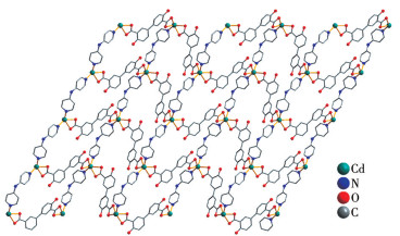 The structure of 2D CP 3 bears one cadmium(Ⅱ) ion, one μ-H2dbda2- block, and a bpa auxiliary ligand within the asymmetric unit. Each Cd(Ⅱ) ion is six-coordinated in a deformed {CdN2O4} octahedral geometry, which is taken by four O atoms from two μ-H2dbda2- blocks and two N atoms from two distinct bpa auxiliary ligands (Fig.7). The H2dbda2- block acts as a μ-linker (Scheme 1, mode Ⅲ) through its bidentate carboxylate groups. A 2D sheet is formed by bridging cadmium centers through the μ-H2dbda2- and μ-bpa linkers (Fig.8). This 2D network is composed of the 4-linked Cd1 nodes, 2-linked μ-H2dbda2- nodes, and 2-connected μ-bpa linkers (Fig.9). It is a sql topology with a vertex symbol of (44.62) (Fig.9).