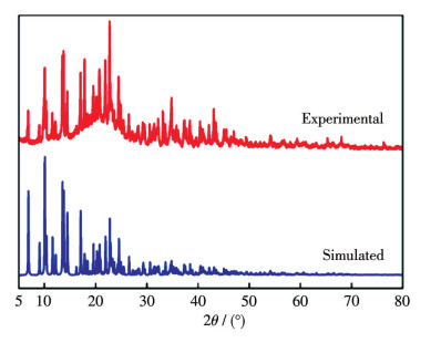 To verify the purity of the complex, a PXRD test was performed. Fig. 6 presents the simulated PXRD pattern alongside the experimental PXRD pattern. Correspondence in position and intensity was observed for most diffraction peaks between the simulated and experimental patterns, indicating high crystalline purity of the synthesized complex.