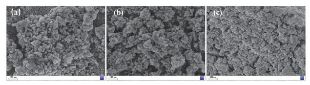 Figure 3  SEM images of (a) UiO-67-COOH-1, (b) UiO-67-COOH-2, and (c) UiO-67-COOH-3
