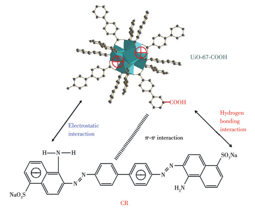Figure 6  Schematic of the possible adsorption mechanism of CR onto UiO-67-COOH